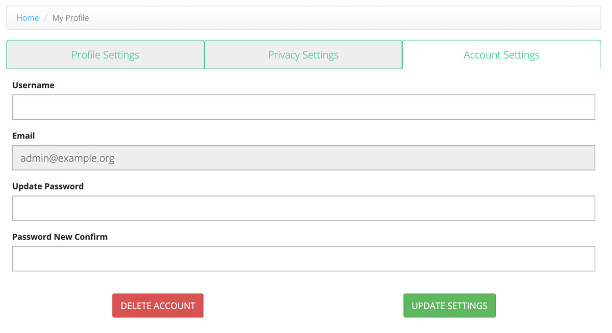 Your profile consists of three tabs: Profile Settings, Account Settings, and Privacy Settings.