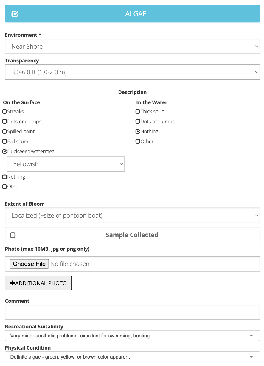 It is highly encouraged, although not required, when submitting an aquatic invasive observation that you include a photo of the species whenever possible. This will help us to confirm your observation.