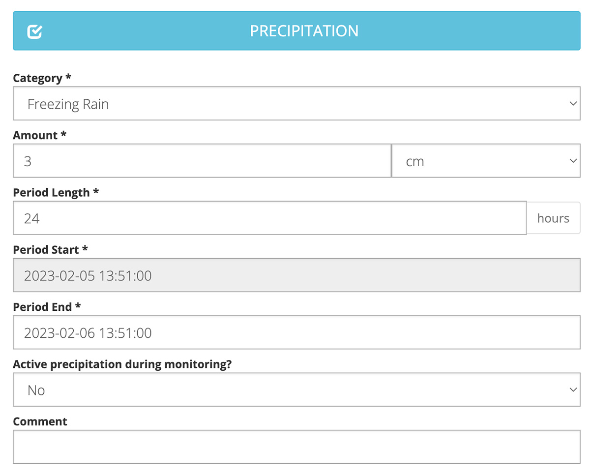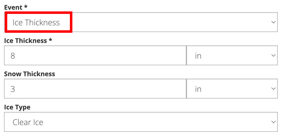 Water/Ice Data Entry