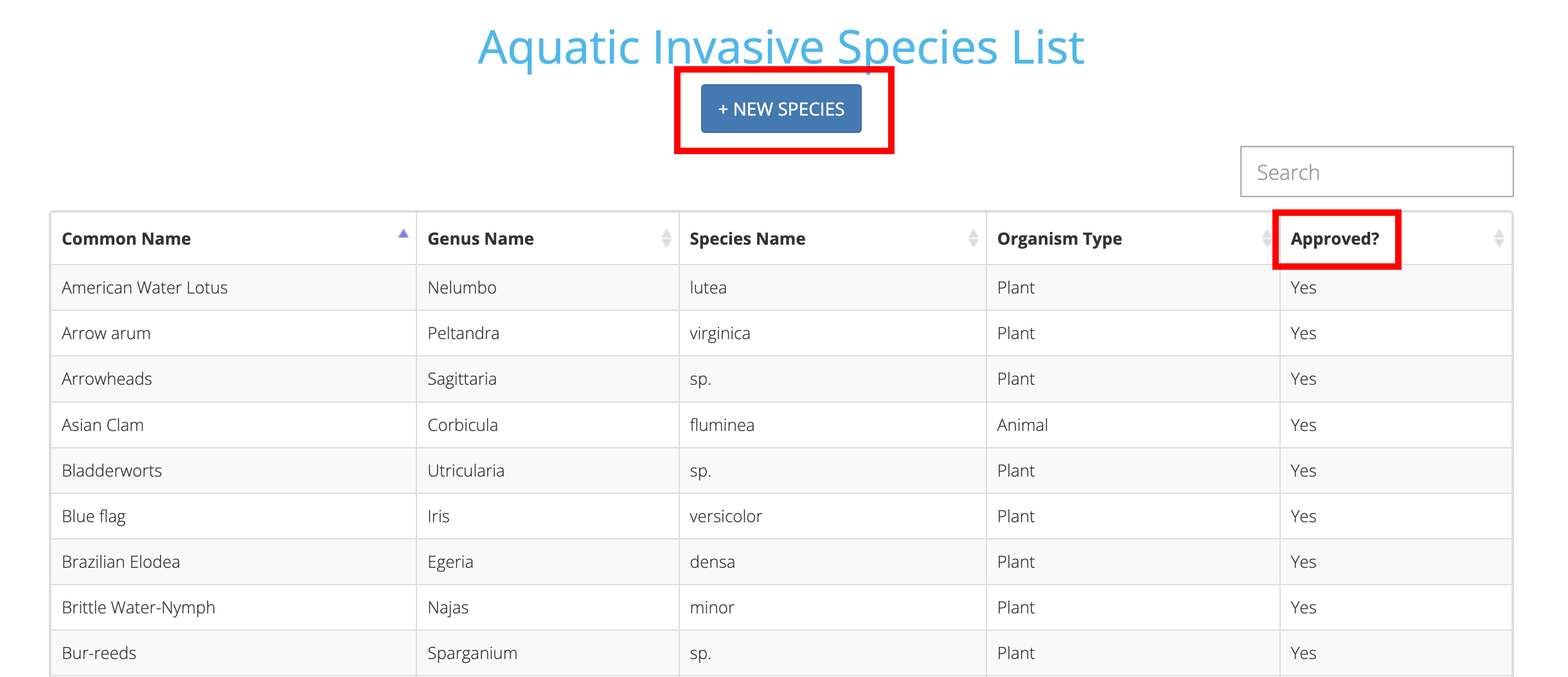 After you have submitted a species to our database it will not be immediately available. The species will need to be approved by one of our aquatic invasive species administrators. Once your entry has been approved you will be notified via email.