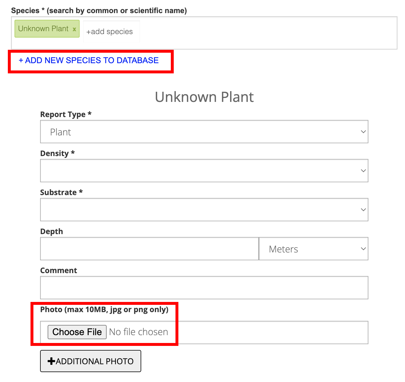 Report Type. Indicates whether the observed organism is a plant or animal. This field should be filled in automatically based on your species selection.