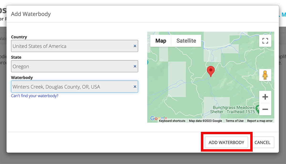 Once you have confirmed the Waterbody selected is correct click the “Add Waterbody” button.