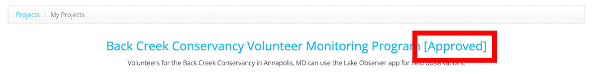Once the Coordinator has verified your status as an ‘approved’ user, you will see “[Approved]” after the project in your ‘My Projects’ list.