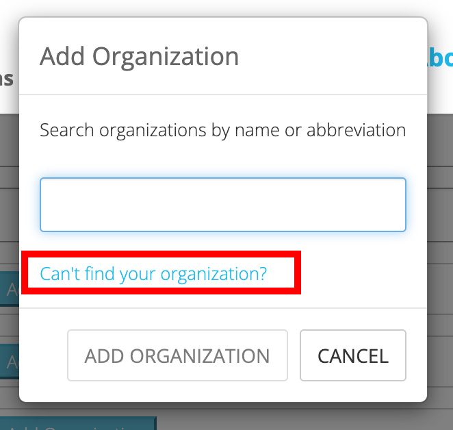 Note: If your Organization is not listed here, you will need to add it to our database.