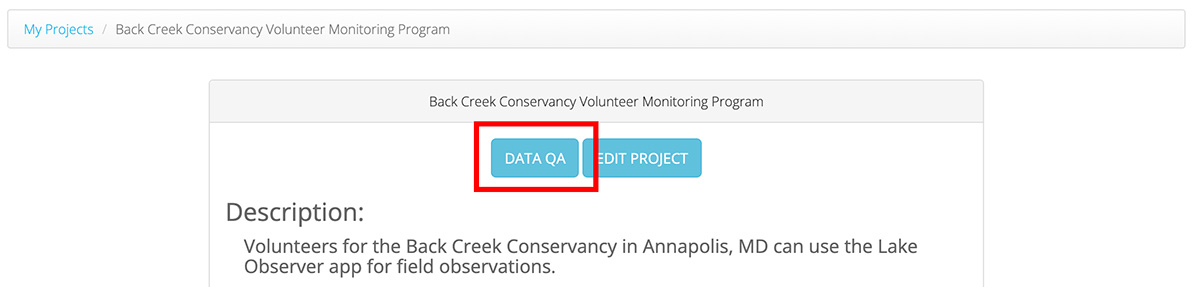 Data QA. If you choose, you can require that all data submitted under your Project undergo review by a Project Administrator. In this case, data submissions will not be made publicly visible until they undergo quality checking.