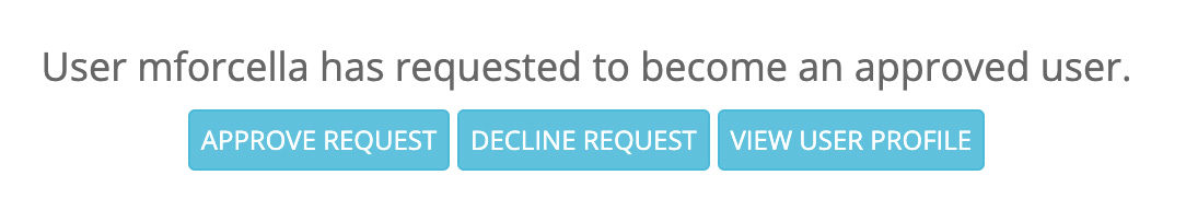 If a User has requested to become an Approved Users for a Project for which you are an Administrator, you will see a red '!' notification near your username in the upper right portion of the navigation menu. You may also receive an email notification, if you have set them up in the Project settings.