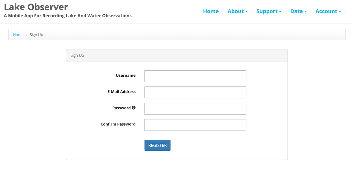 Lake Observer Account Registration (Sign Up)