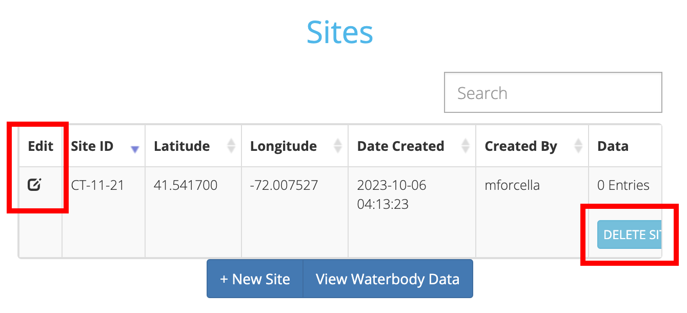 If you have made an error in creating your Site you can edit or delete that Site if needed. However, once data has been entered for a Site you will no longer be able to edit or delete that Site.